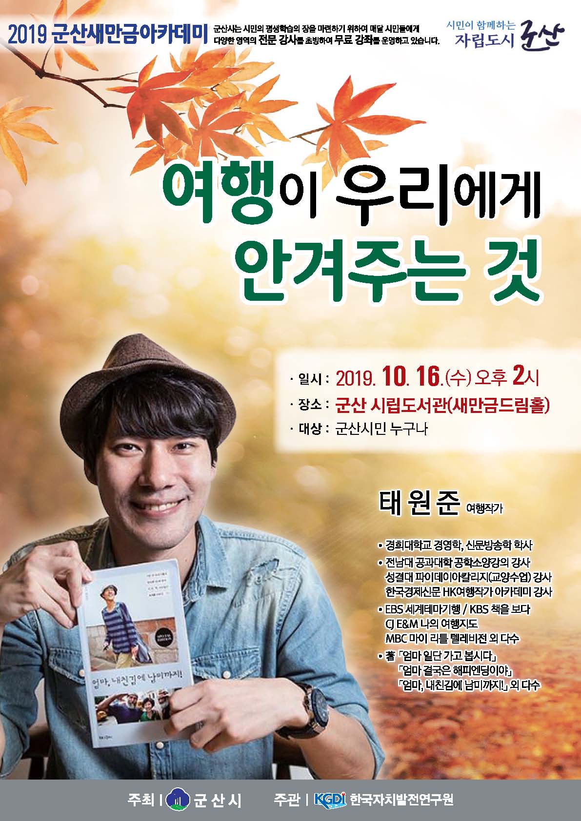 창의인재 교육도시 군산에 걸맞게 시민의 글로벌 역량을 강화하고 평생교육의 이념을 실현하고자 군산새만금아카데미에서 태원준 여행작가를 초청하여