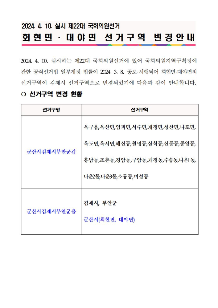 | 92 | 제22대 국회의원선거 회현면, 대야면 선거구역 변경안내 |