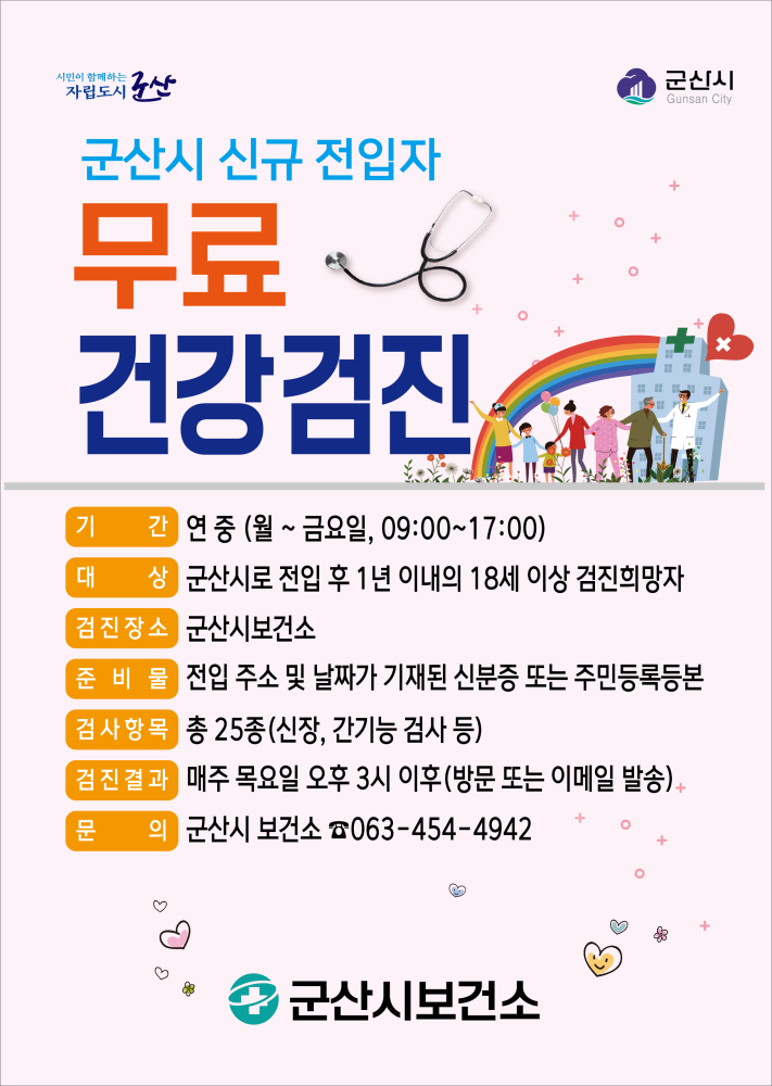 | 94 | 군산시 신규 전입자 무료건강검진 안내 |