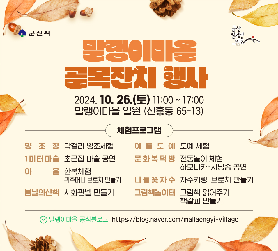 | 186 | 말랭이마을 축제 안내(10월 26일) |