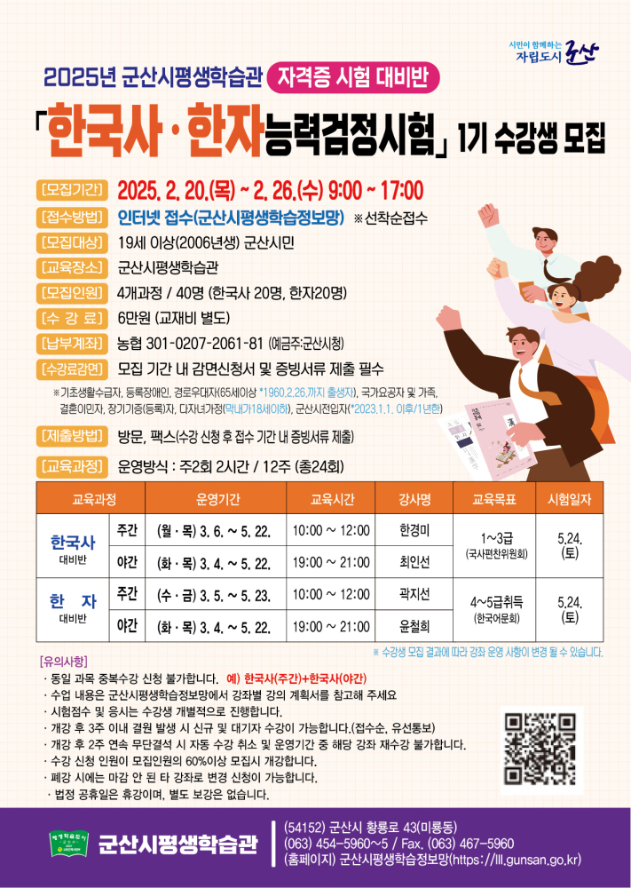 289 2025년 한국사,한자 능력검정시험1기 자격증 시험 대비반 수강생 모집 다운받기 교육지원과 25.02.18 6780