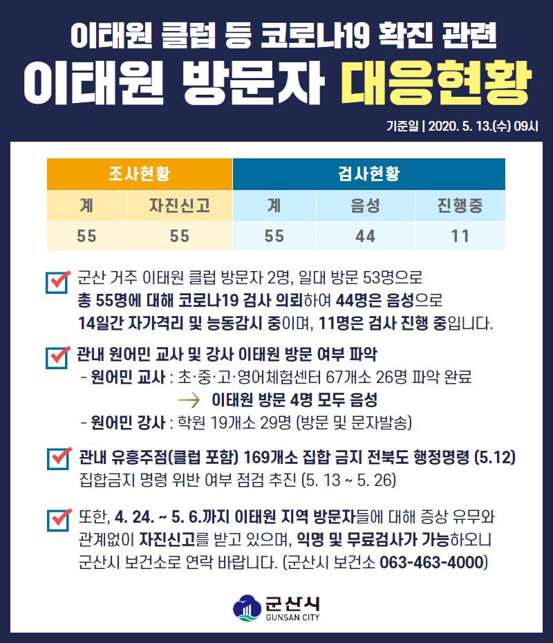 22 코로나19 확산 관련 이태원 방문자 군산시 대응현황[5.13.(수) 9시 기준] 다운받기 총관리자 20.05.14 2808
