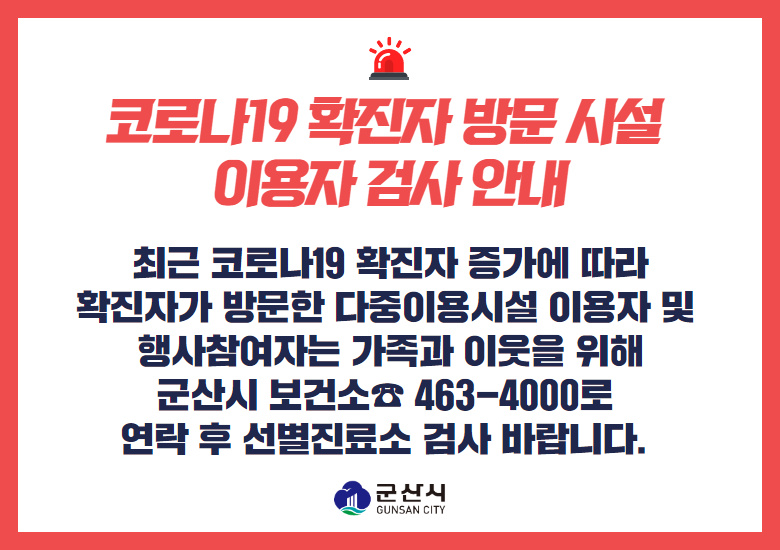 군산시청 감염병관리과 감염병관리계에서 제작한 "감염병소식"저작물은 "공공누리 제4유형"에 따라 이용 할 수 있습니다.