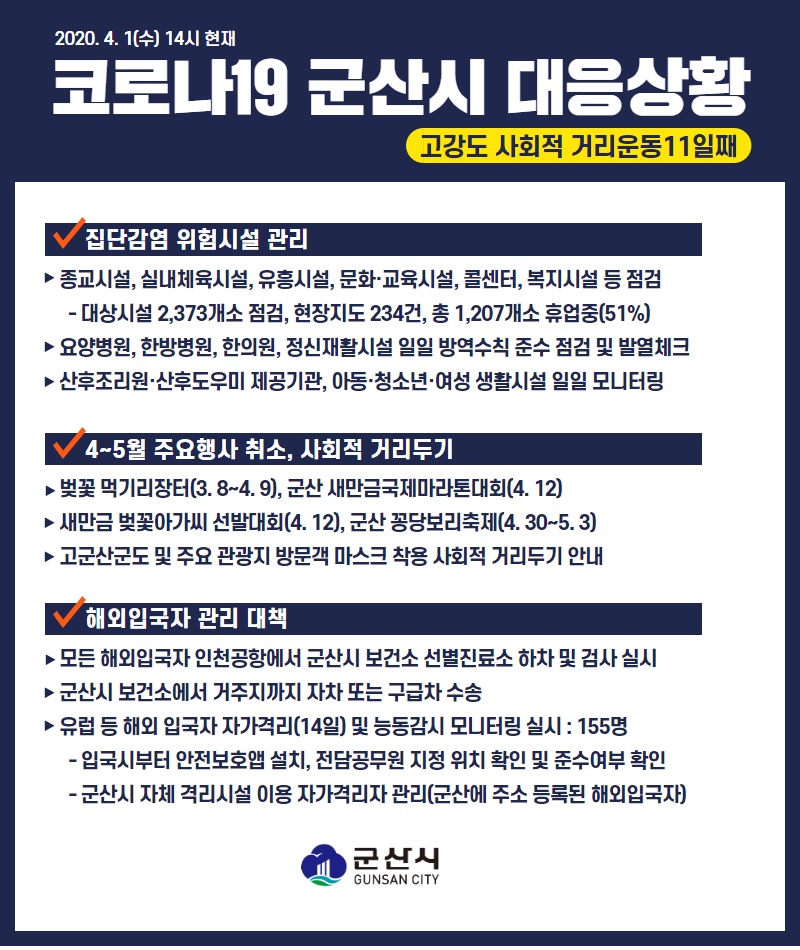10 코로나19 군산시 대응상황[4.1.(수) 14시 기준] 다운받기 총관리자 20.04.01 3134