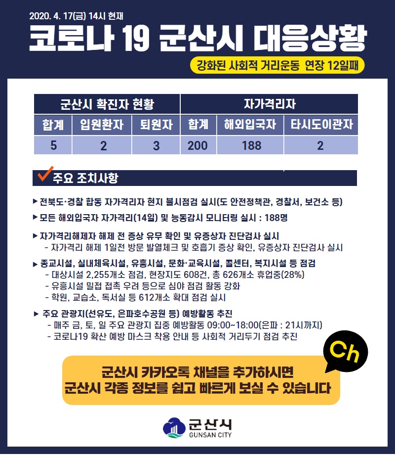 15 코로나19 군산시 대응상황[4.17.(금) 14시 기준] 다운받기 총관리자 20.04.18 1627