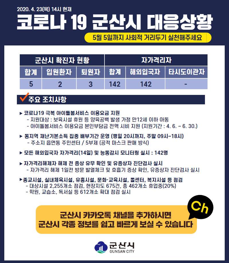 17 코로나19 군산시 대응상황[4.23.(목) 14시 기준] 다운받기 총관리자 20.04.24 1790