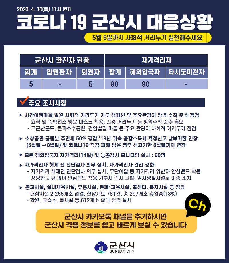 18 코로나19 군산시 대응상황[4.30.(목) 11시 기준] 다운받기 총관리자 20.05.03 1611