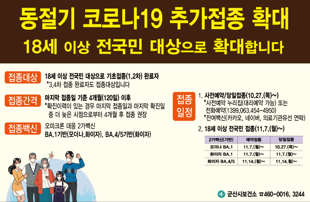938 코로나19 동절기 추가접종 18세 이상 대국민대상으로 확대합니다. 다운받기 건강관리과 22.11.14 1602