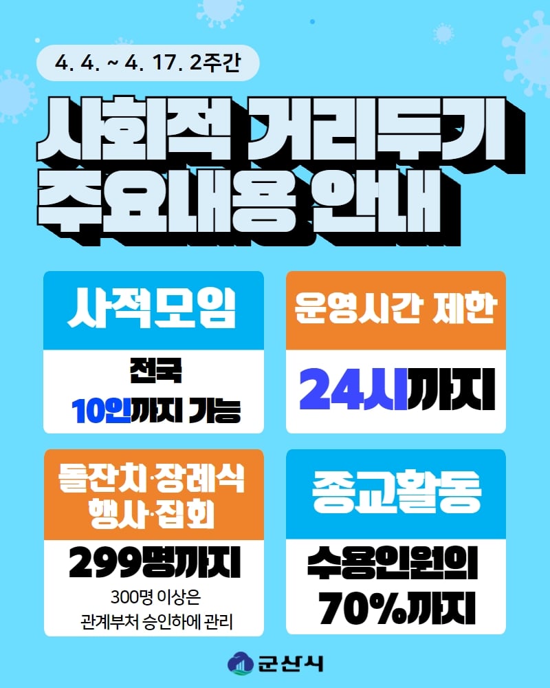 694 2022. 4. 4.~2022. 4. 17. 사회적 거리두기 강화방안 연장 안내 다운받기 총관리자 22.04.04 638