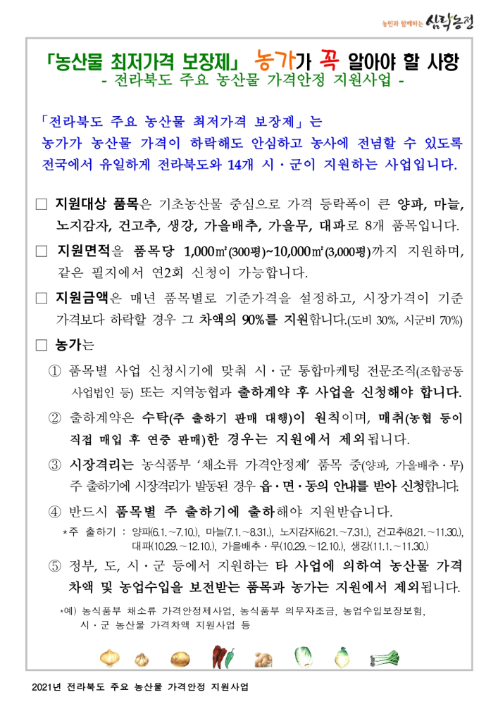 | 221 | 전북 주요농산물 가격안정 지원사업(농산물 최저가격 보장제) |