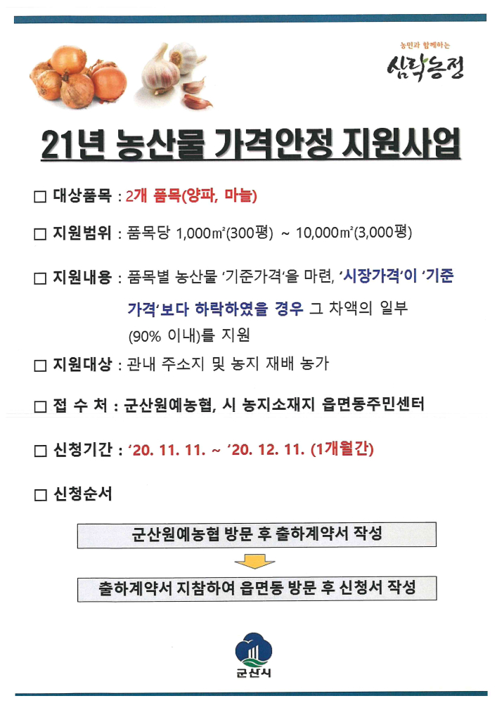 | 193 | 21년 농산물 가격안정(마늘,양파) 지원사업 안내 |