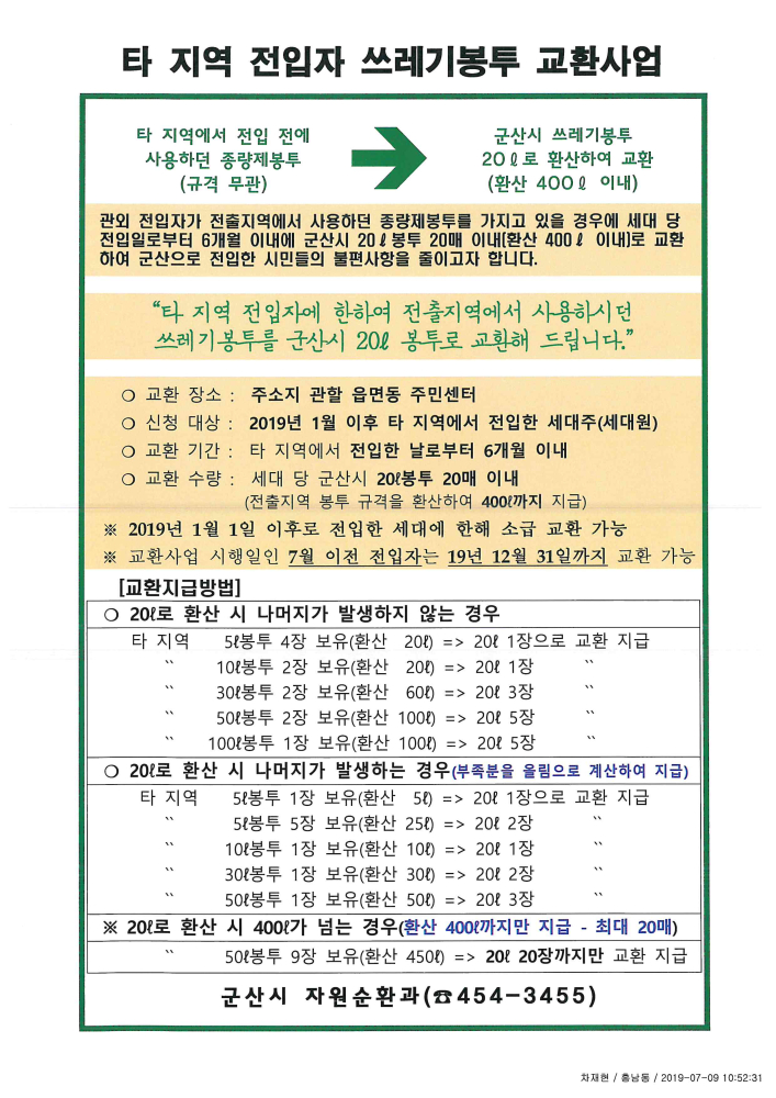 | 84 | 타 지역 전입자 쓰레기봉투 교환사업 실시 안내 |