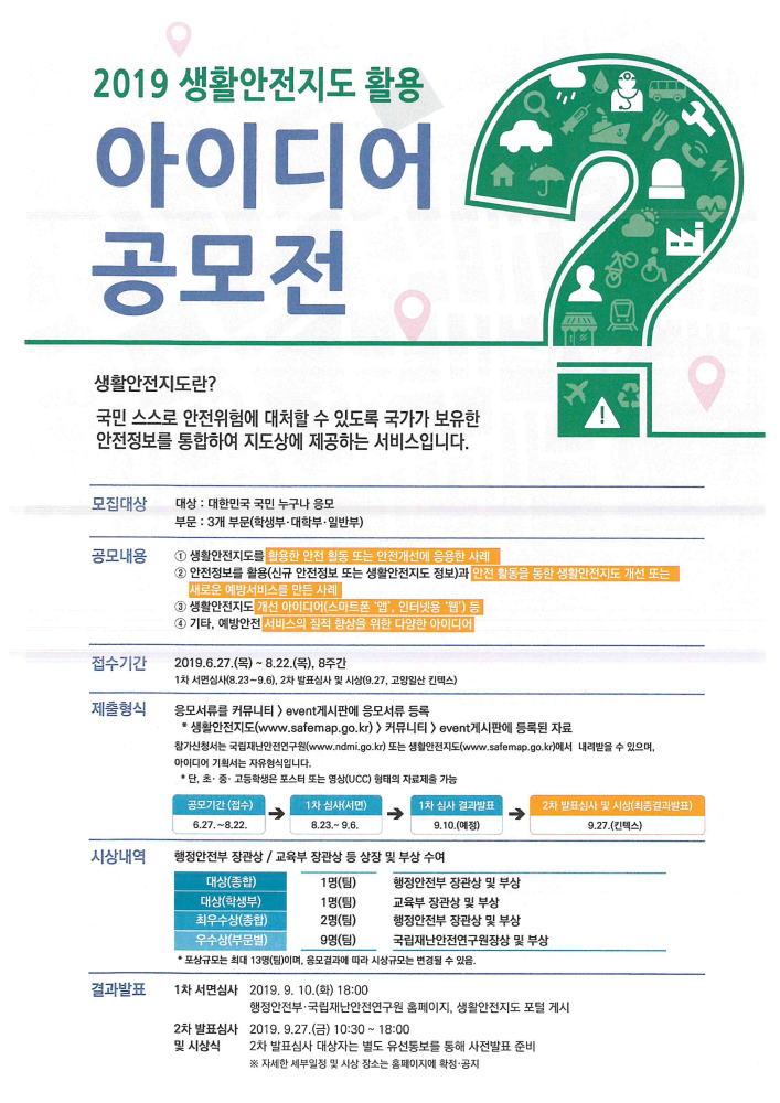 | 85 | 2019 생활안전지도활용 아이디어 공모전 안내 |