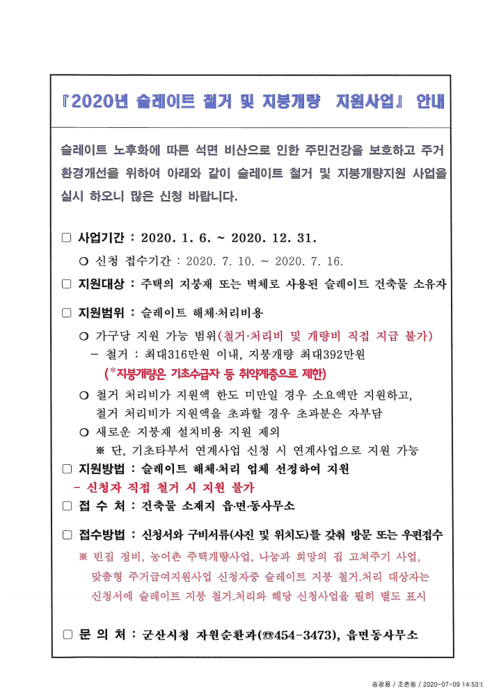 | 90 | 2020년 슬레이트 철거 및 지붕개량 지원사업 안내 |