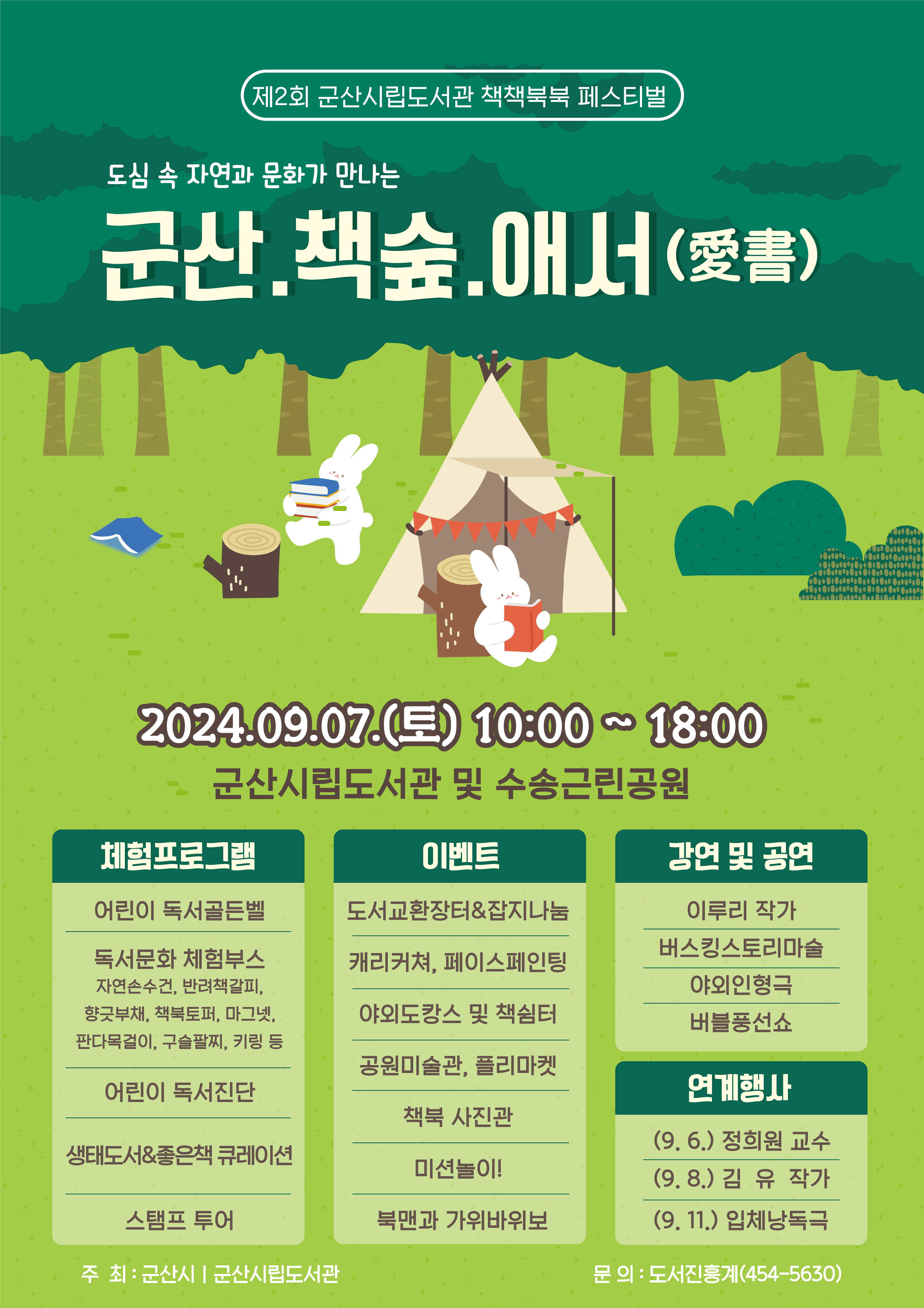 6. 행사내용 : 작가강연 및 가족공연, 어린이독서골든벨, 체험부스 등