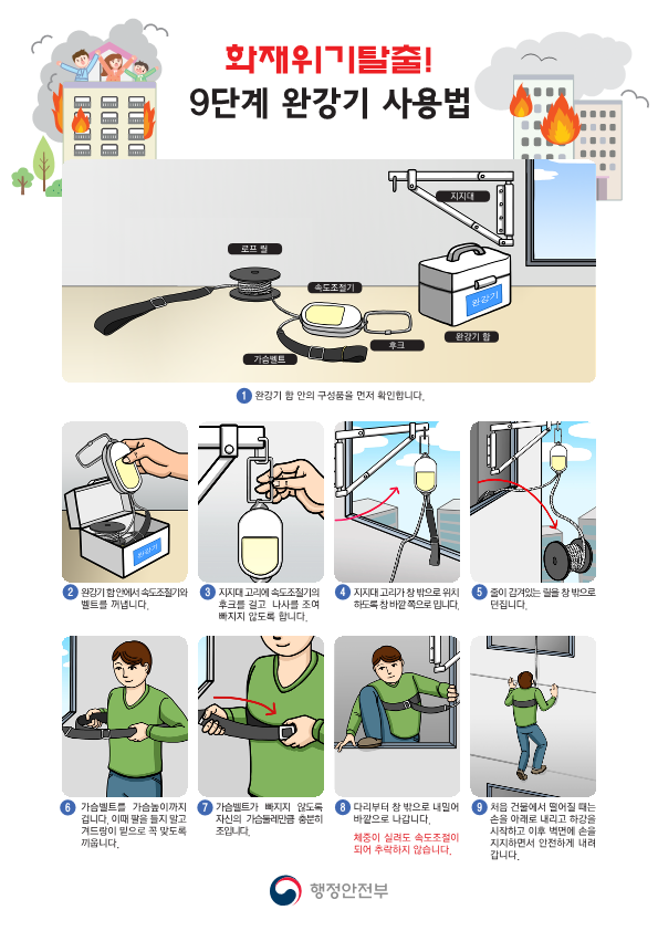 최근 숙박업소 화재 발생 시 완강기 사용법 미숙지로 인해 다수의 인명피해가 발생하고 있어 많은 시민이 완강이 사용법을 알 수 있도록 홍보하오니 참고하시기 바랍니다.