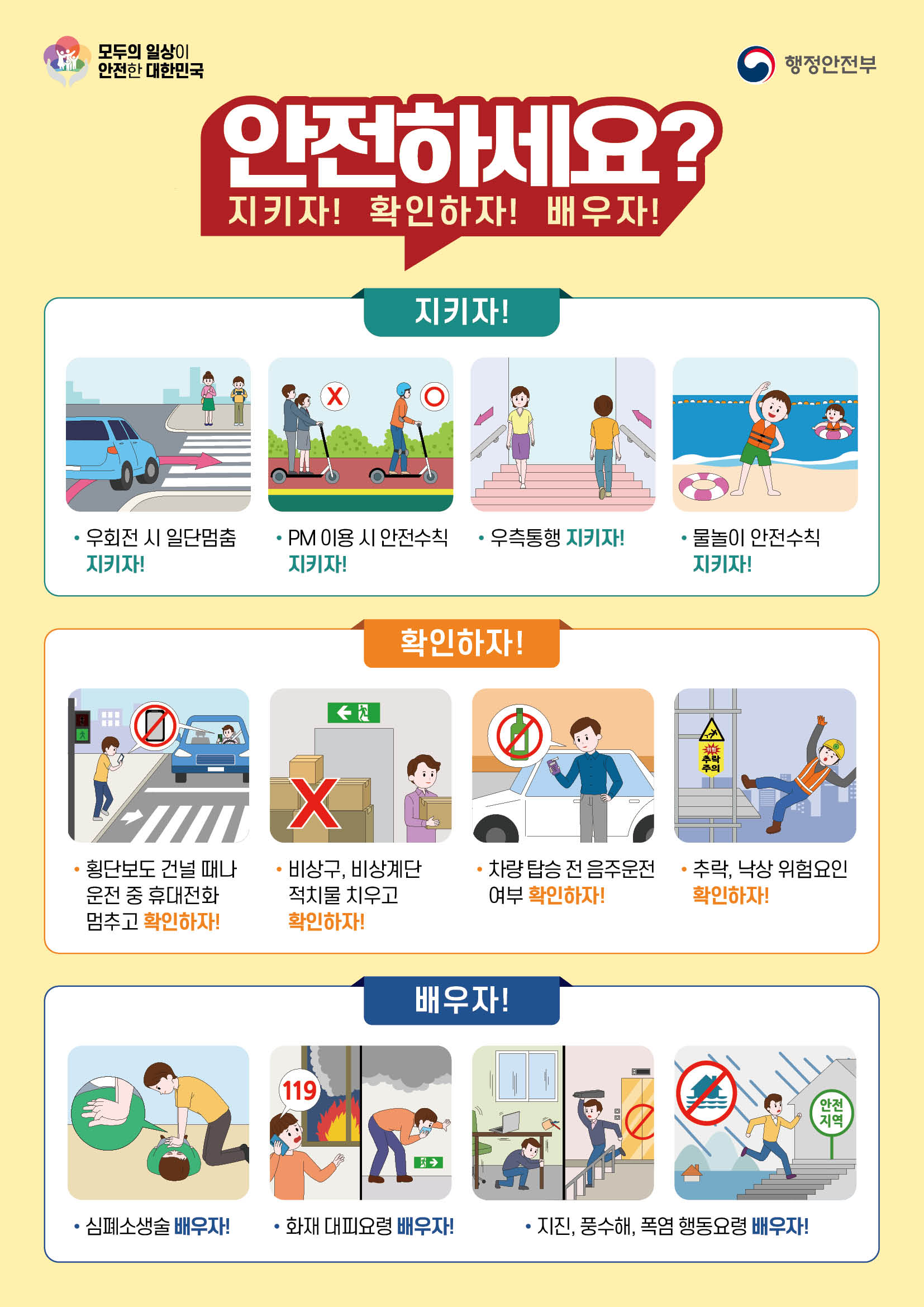 『안전 한바퀴』는 행정안전부에서 국가 차원의 안전관리 및 재난 대응역량을 강화하고, 생활 속 안전문화 정착을 위한 안전문화 운동입니다.