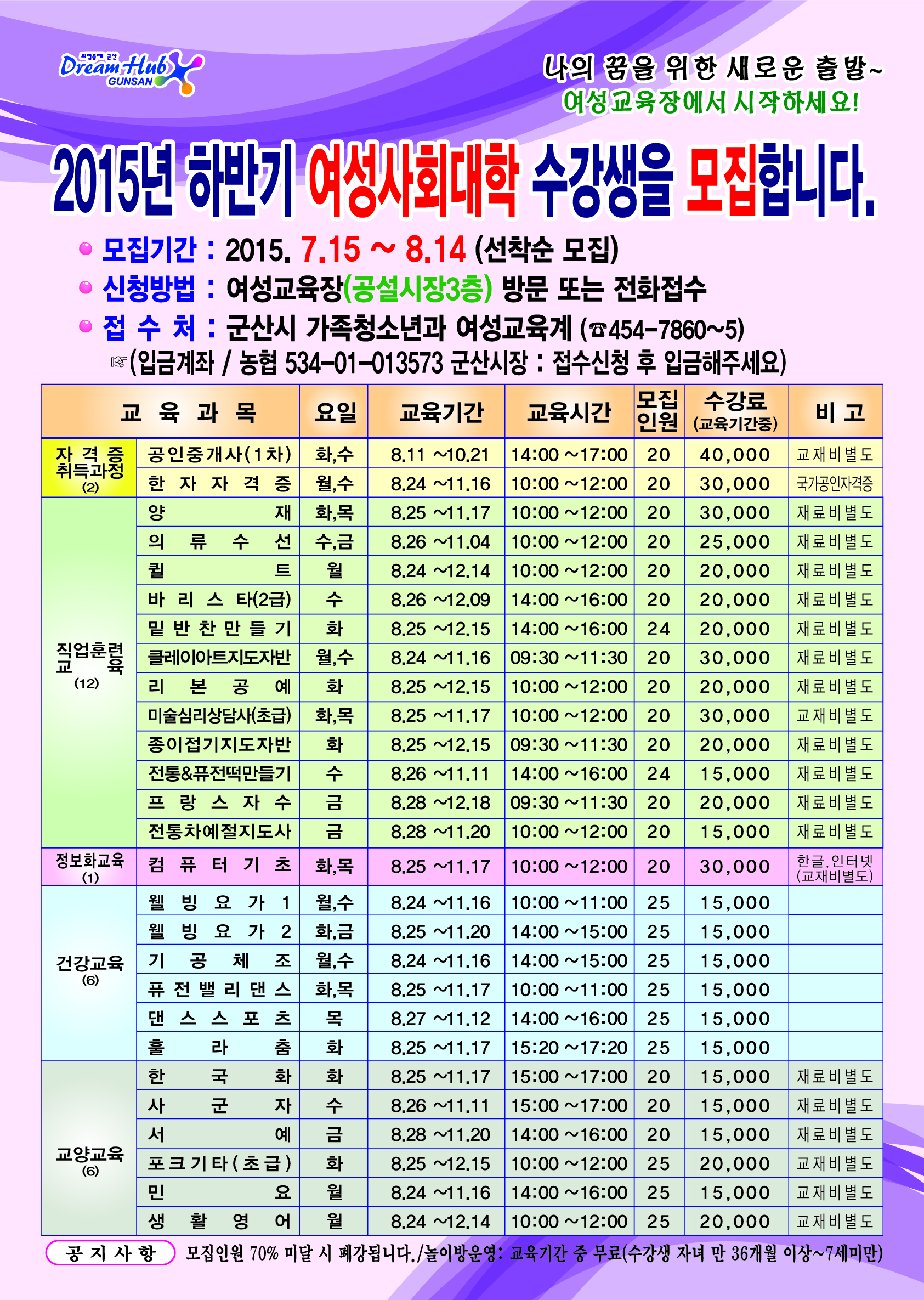 | 3001 | 2015년 하반기 여성사회대학 수강생 모집 |