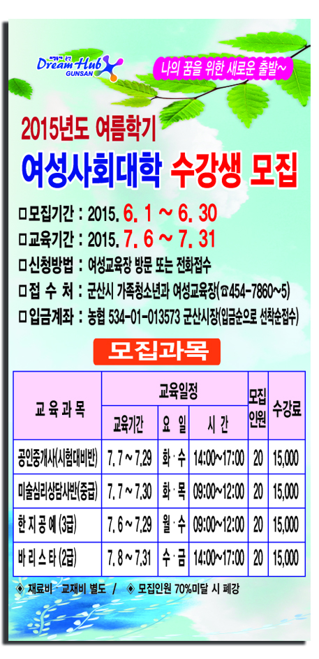 | 2940 | 2015년 여름학기 여성사회대학 수강생 모집 |