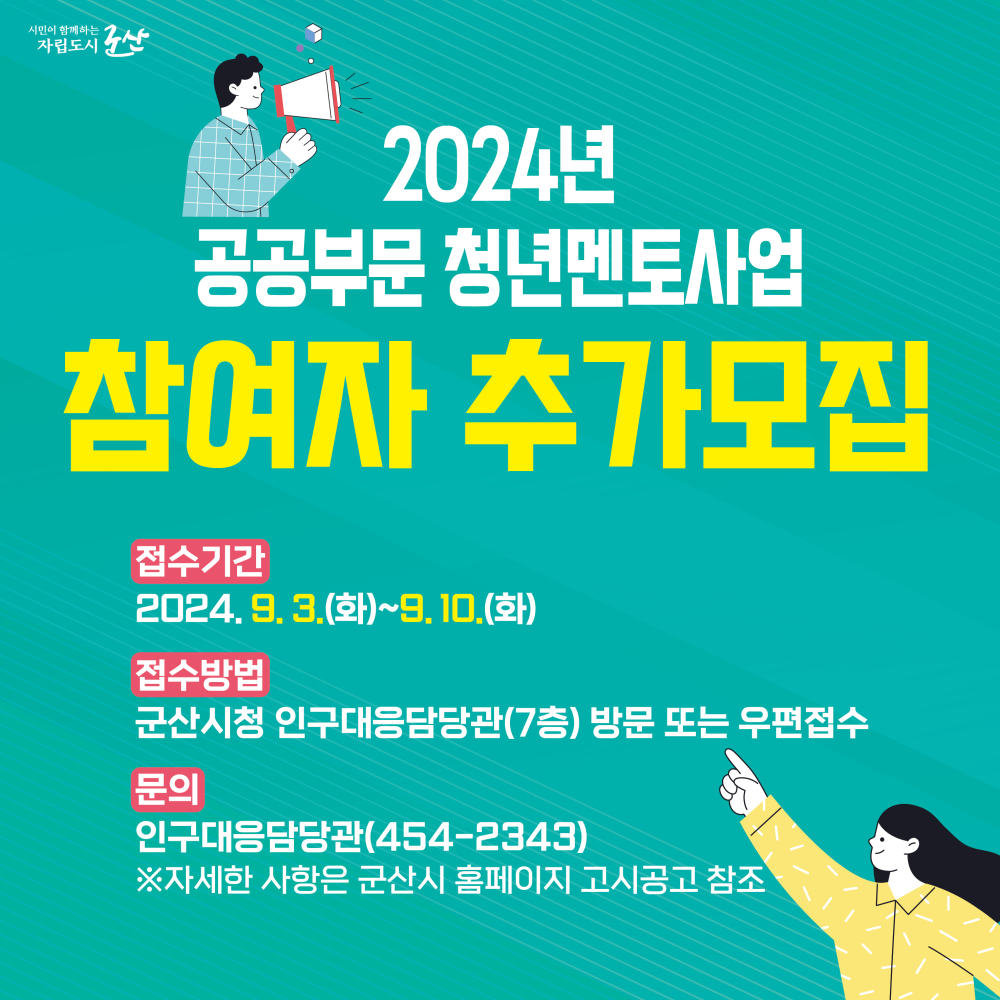 | 6045 | 2024년 공공부문 청년멘토 사업 참여자 추가 모집 |