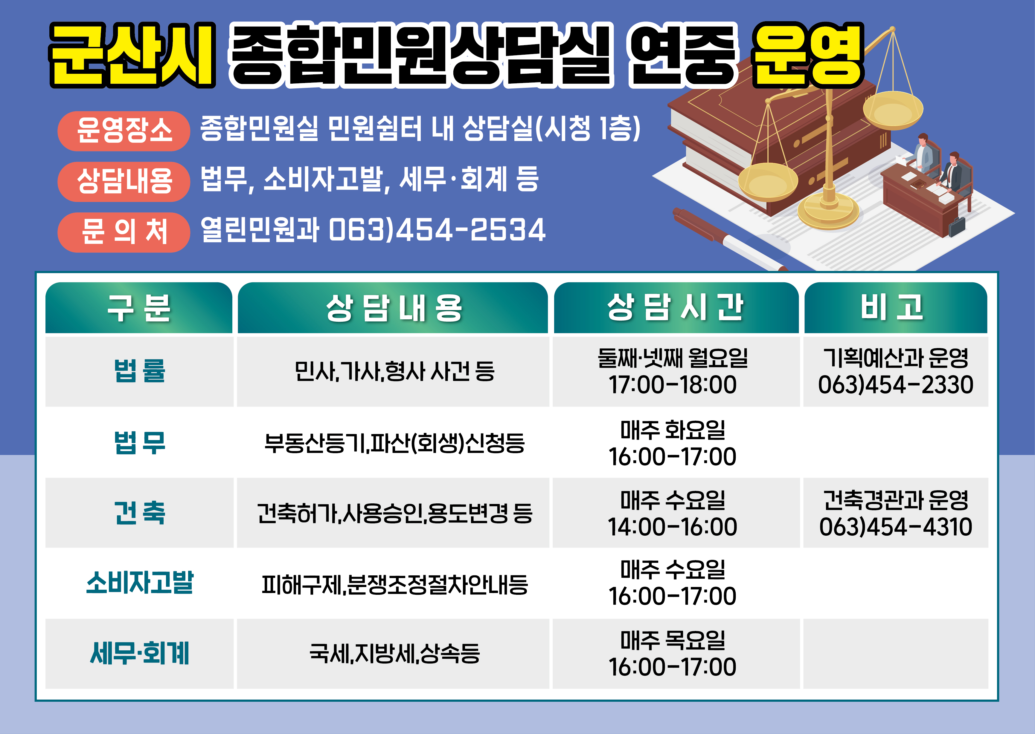 | 5971 | 군산시 종합민원상담실 연중 운영 안내 |