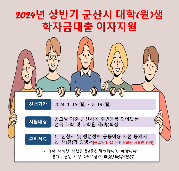 2024년 상반기 군산시 대학생 학자금대출 이자지원 신청·접수 안내