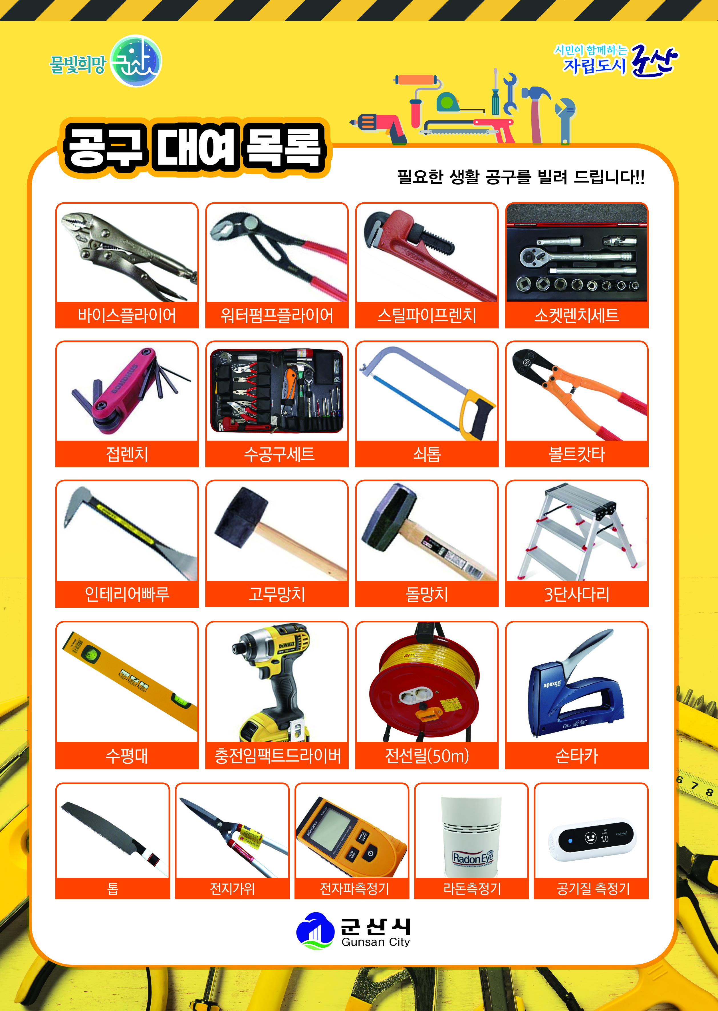 생활공구 무료대여사업을 운영하고 있으니 많은 이용 바랍니다.