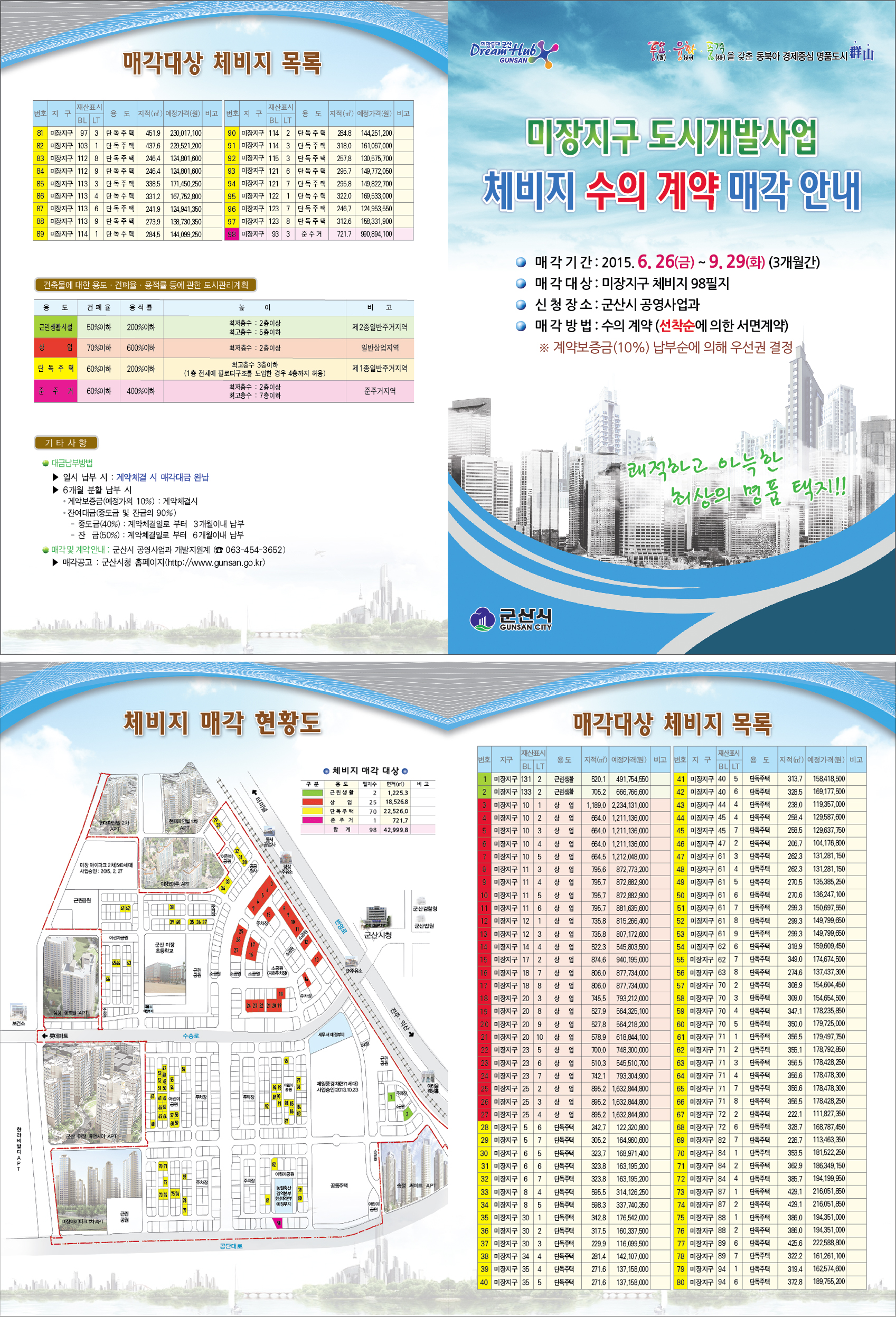 도시개발사업지구내 잔여 체비지를 아래와 같이 매각