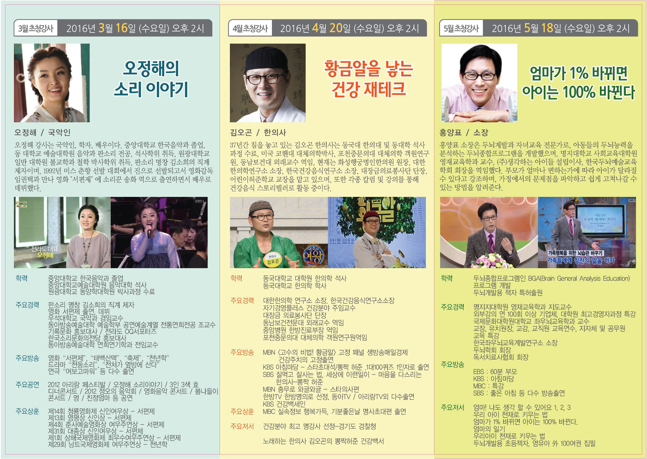 군산새만금아카데미 2016년 5월 강좌가 다음과 같이 무료 강좌로 개최되오니 시민 여러분의 많은 참석 바랍니다.