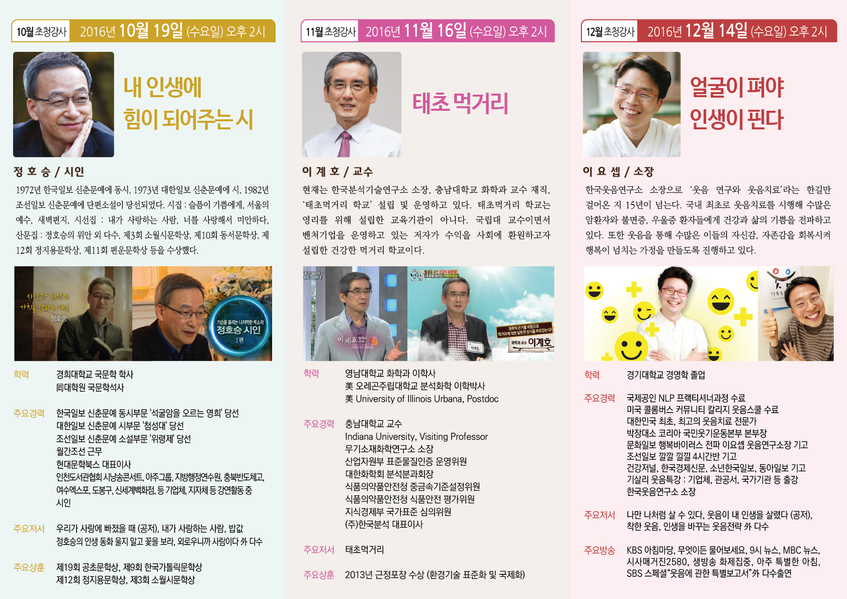 평생 교육의 이념을 실현하고자 10월에는 정호승 시인과 함께 하는