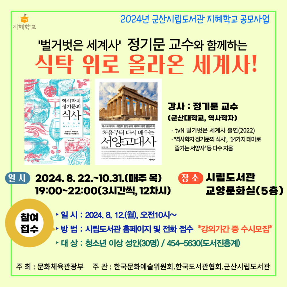 | 347 | 2024년 군산시립도서관 '식탁위로 올라온 세계사' 운영 |