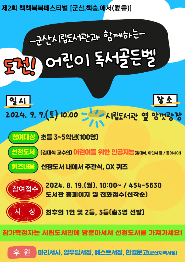 | 350 | 군산시립도서관 제2회 책책북북페스티벌 '도전! 어린이독서골든벨' |