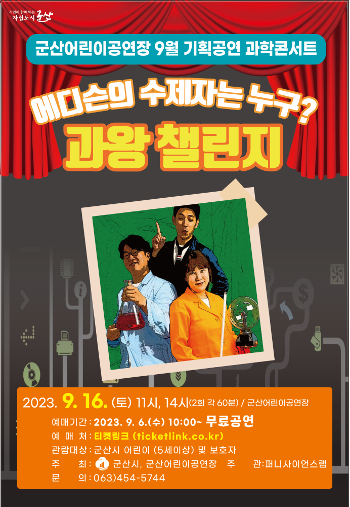 | 272 | 군산어린이공연장 9월 기획공연 '과왕 챌린지' 안내 |
