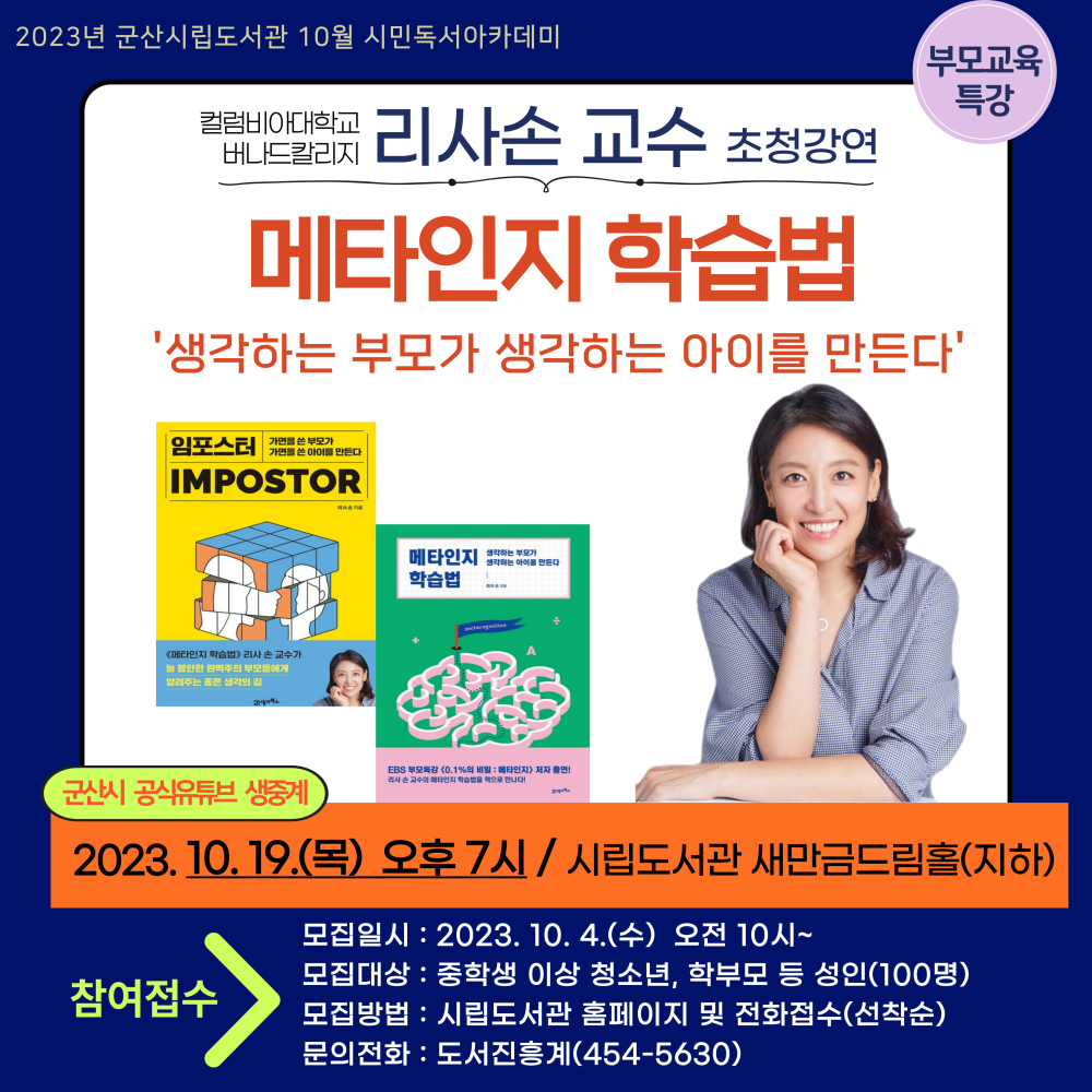 | 276 | 2023년 시립도서관 부모교육특강 <리사 손 교수 초청강연> 안내 |