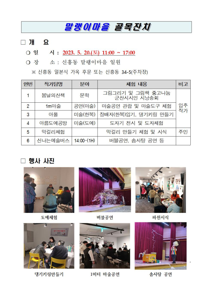| 248 | 말랭이마을 5월 골목잔치 안내 <5. 20.(토)> |