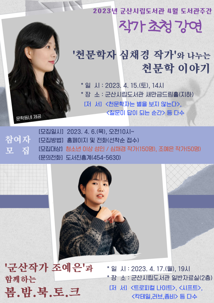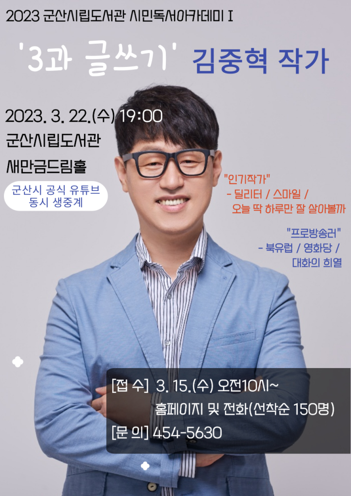 | 234 | 2023년 3월 군산시립도서관 시민독서아카데미(김중혁 작가 강연) |