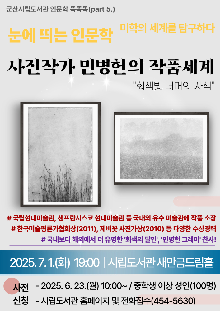 | 411 | 2025년 시립도서관 [사진작가 민병헌의 작품세계] |