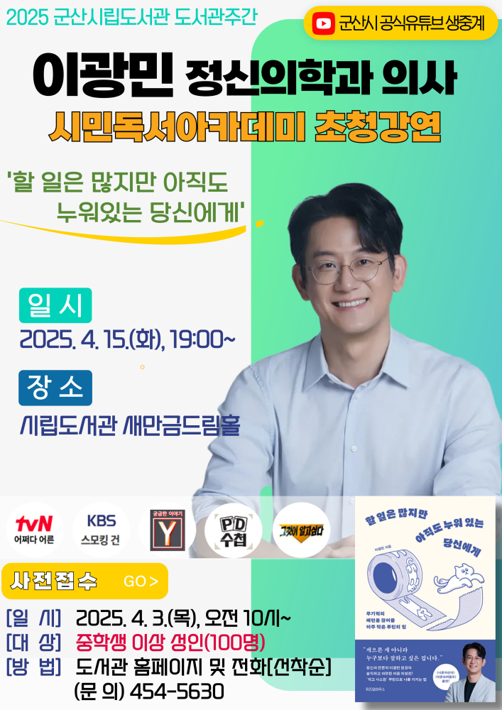 | 395 | 2025 시립도서관 [이광민 정신의학과 의사 초청 강연] 안내 |
