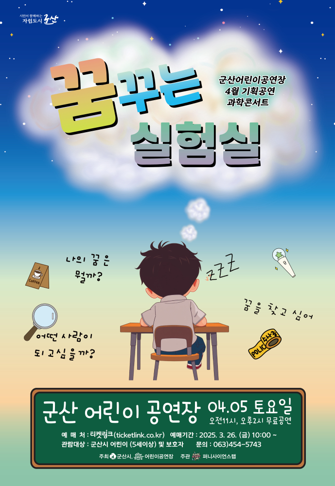 | 391 | 군산어린이공연장 4월 기획공연 '꿈꾸는 실험실' 안내 |