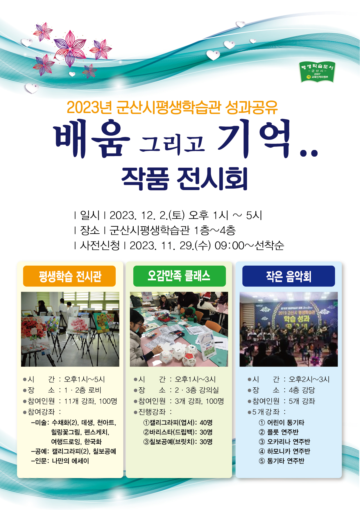 * 사전신청 : 2023년 11월 29일(수요일), 09시~선착순(군산시평생학습정보망)