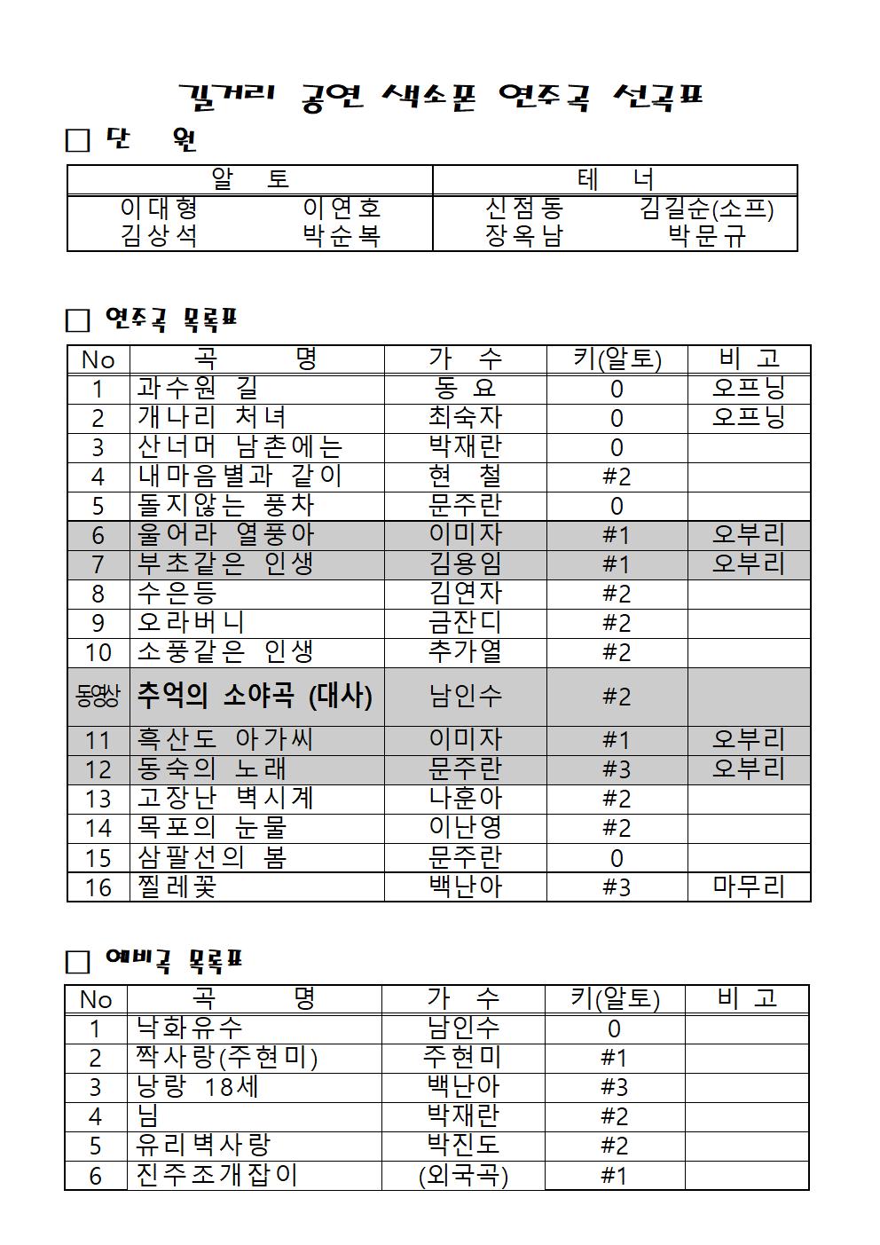 o 공연내용 : 색소폰 연주 - 선곡표(붙임 참조)