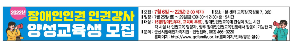 | 158 | 2022년 장애인인권강사 양성교육생 모집 |