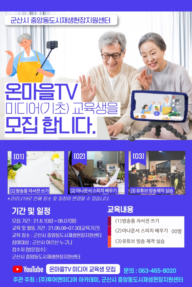 | 117 | 군산시 ON마을TV 미디어교육 수강생 모집 공고 |