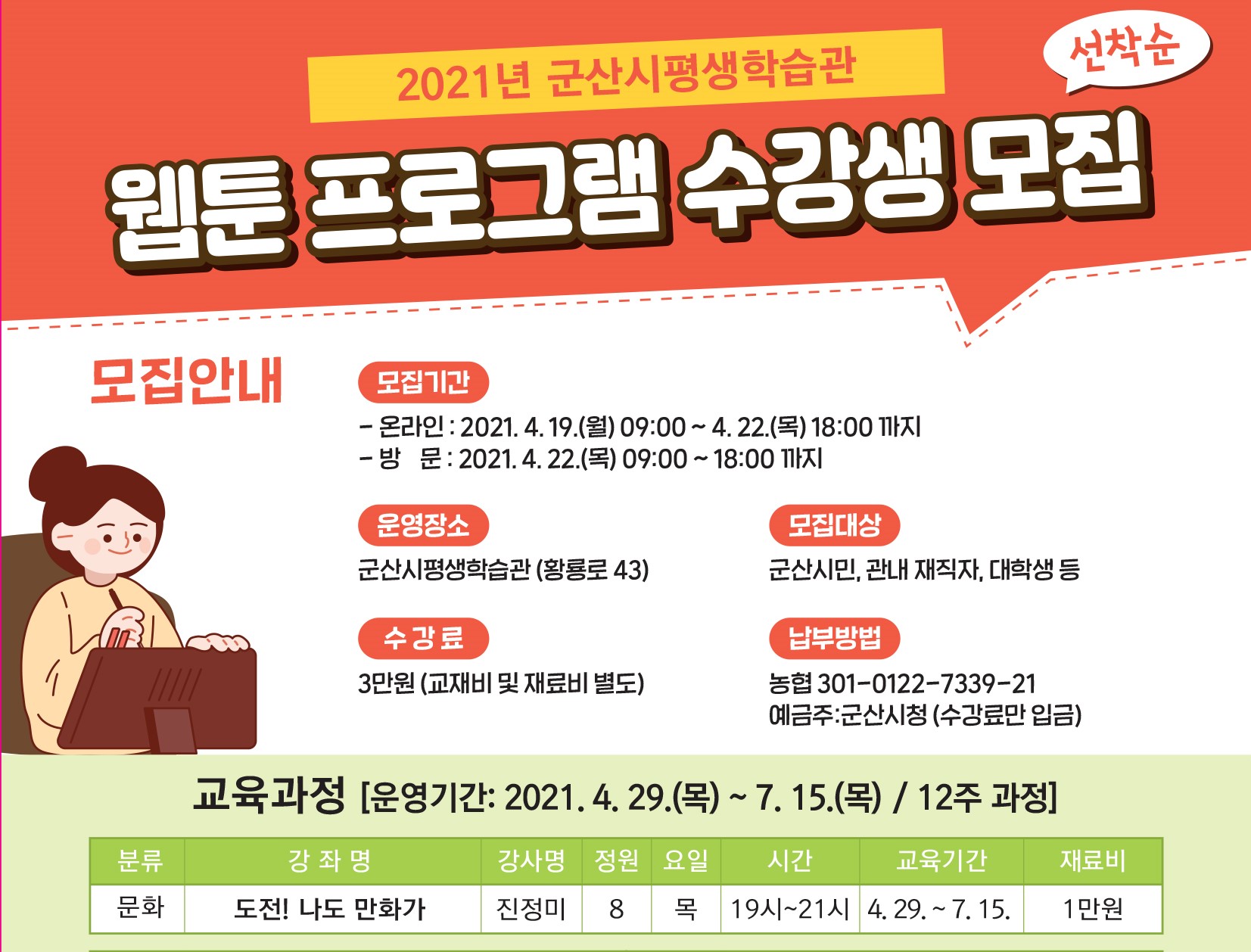 2021년 월명평생학습센터&웹툰 프로그램 수강생 모집