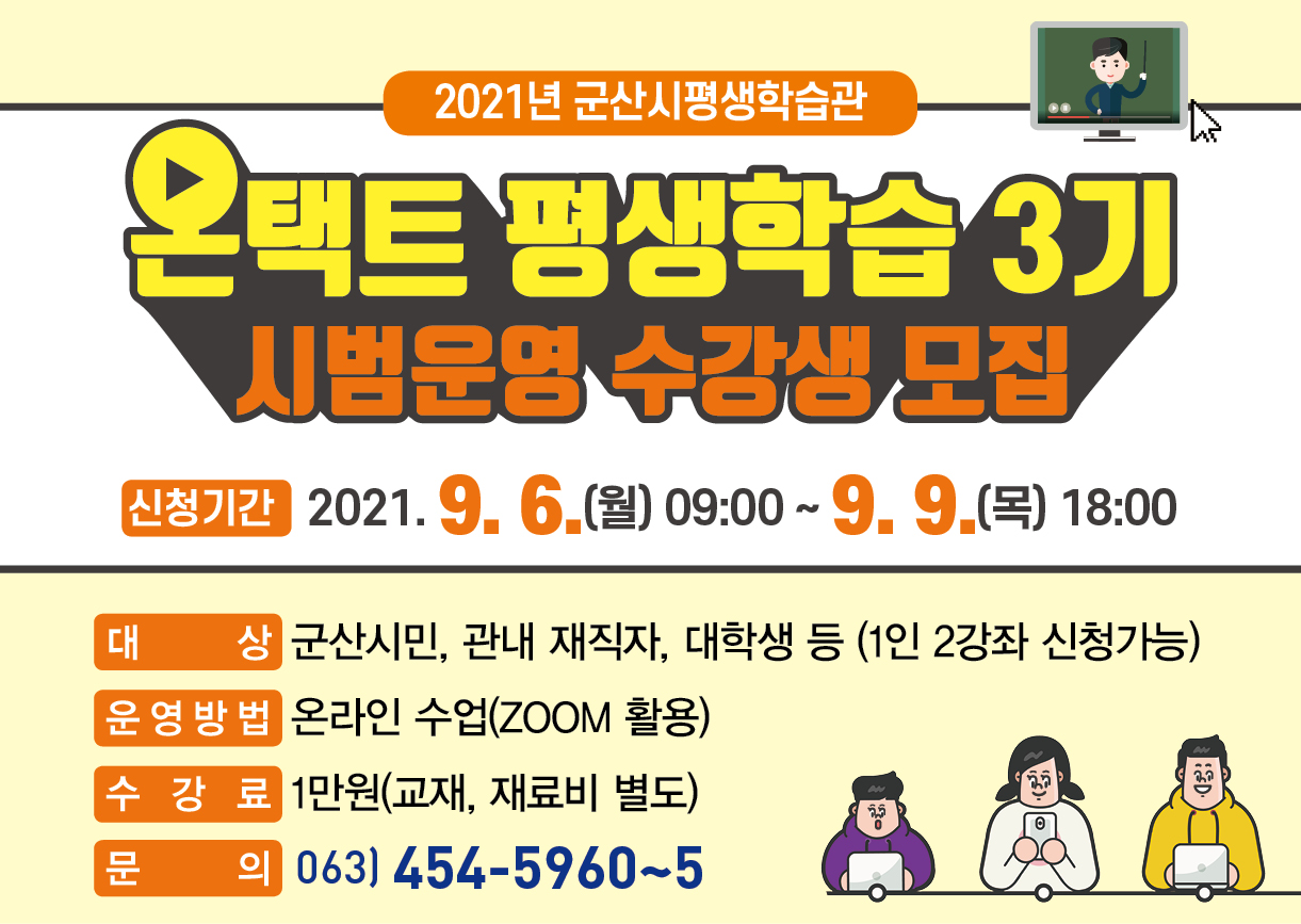 4. 신청방법 : 선착순 인터넷 접수(군산시평생학습정보망)