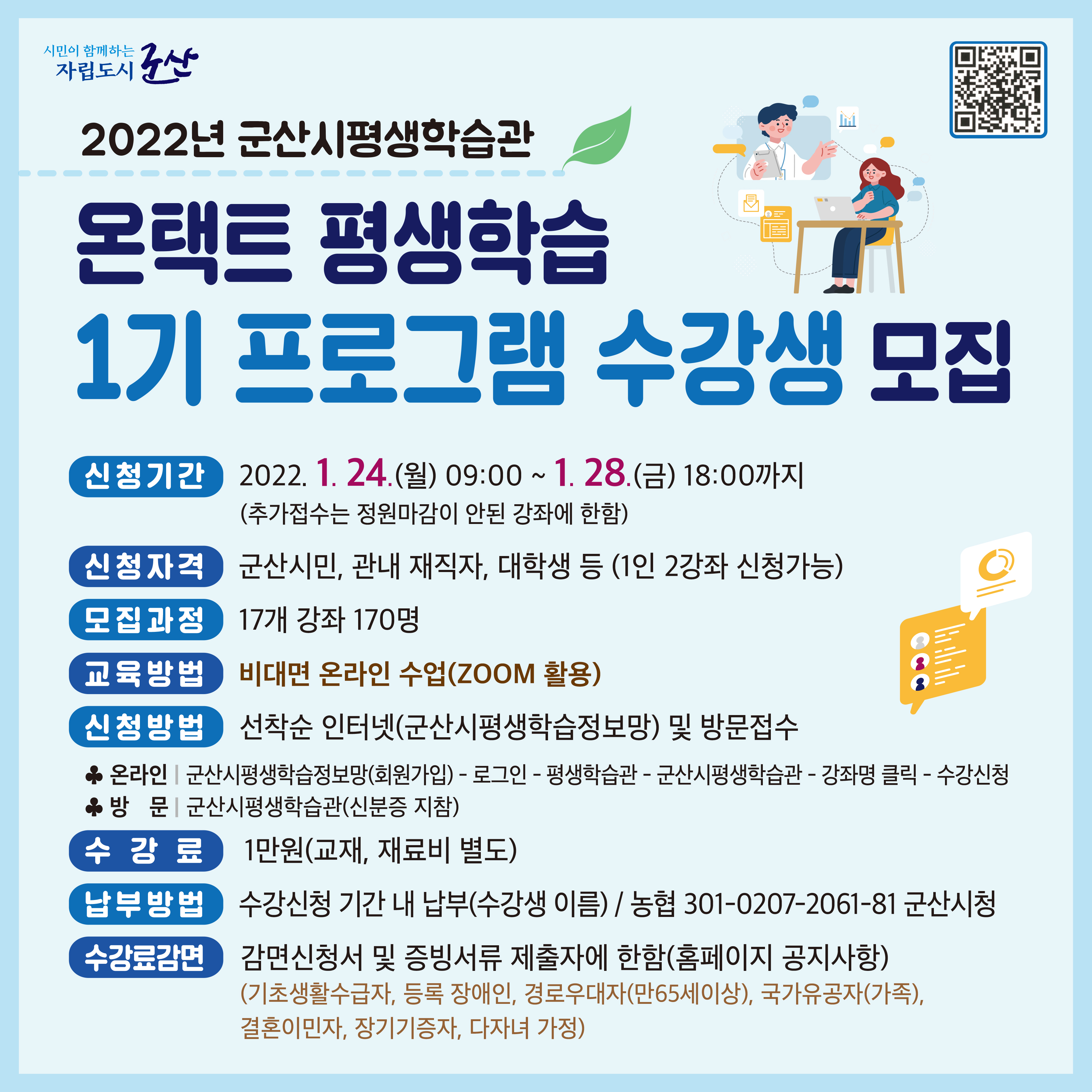 2022년 군산시평생학습관 온택트 평생학습 1기 프로그램 수강생 모집