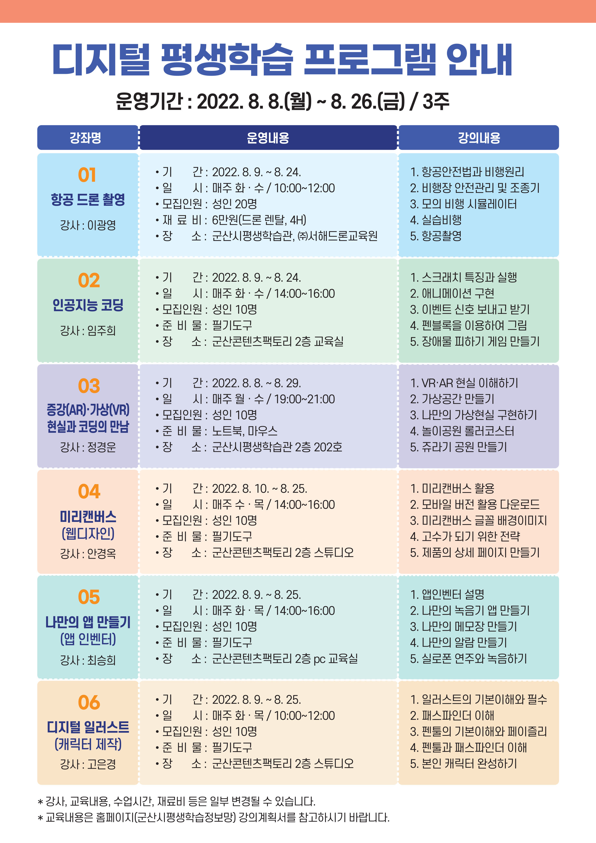 2022년 군산시평생학습관 디지털 평생학습 프로그램 수강생 모집