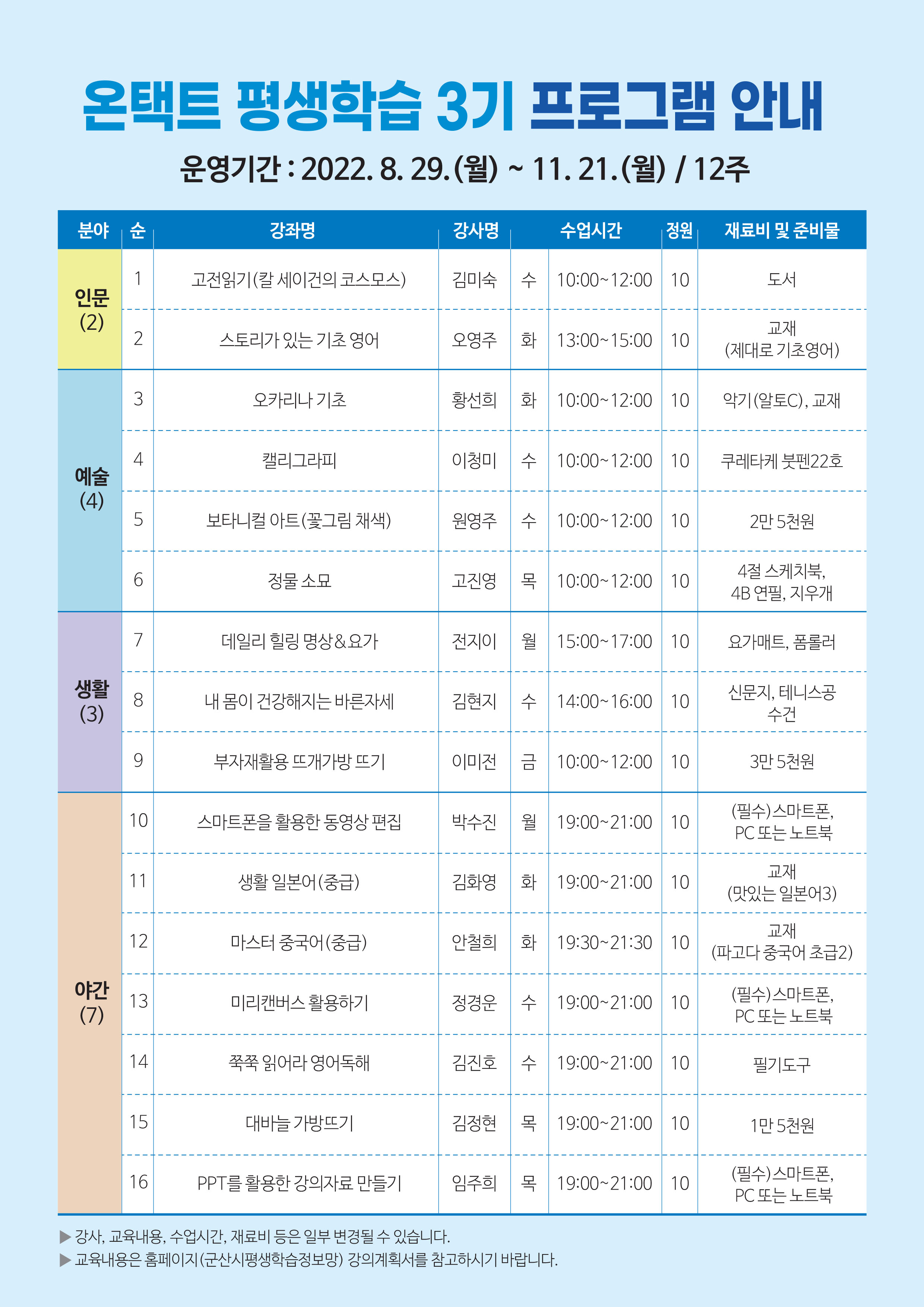 2022년 군산시평생학습관 온택트 평생학습 3기 프로그램 수강생 모집