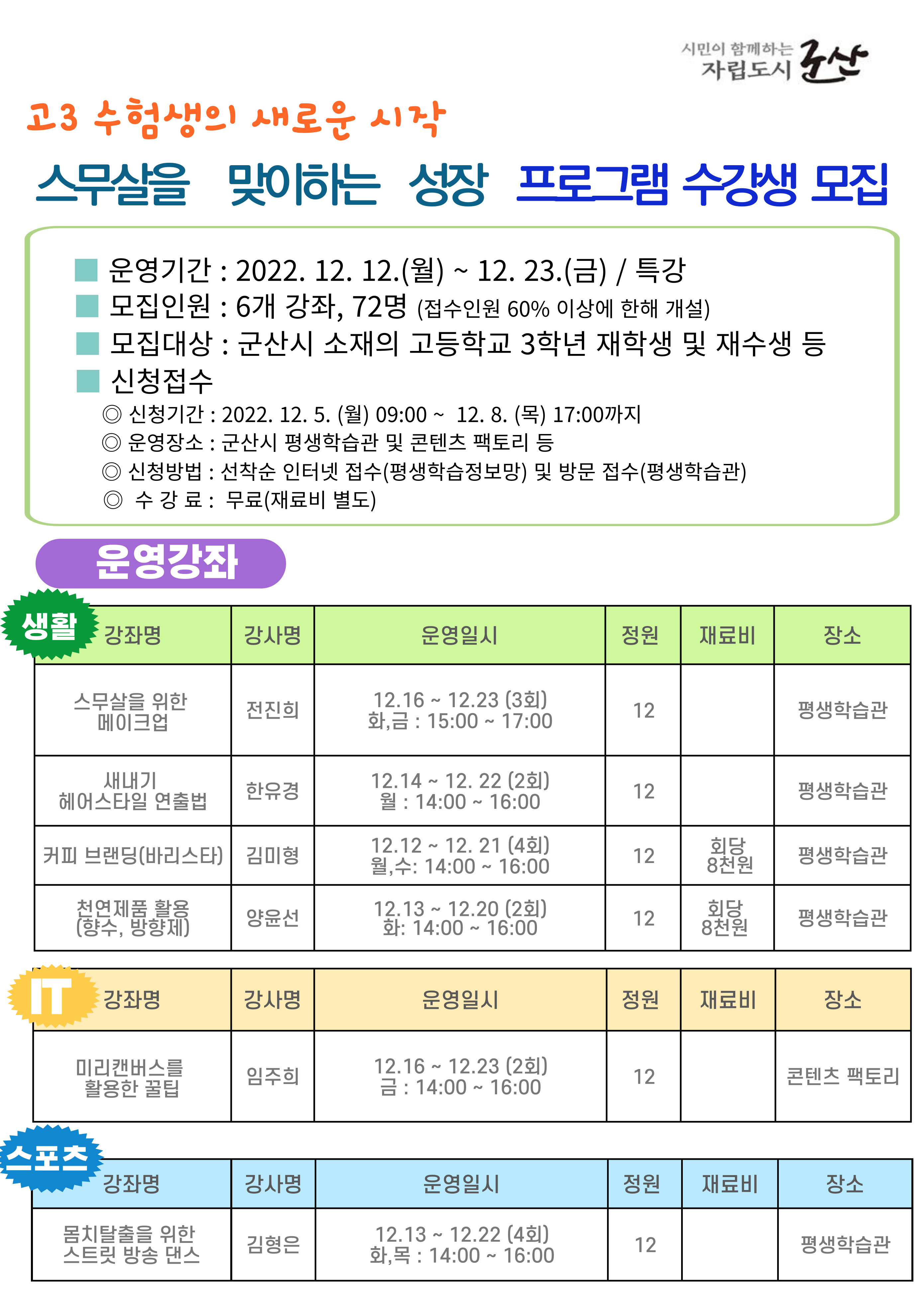 □ 신청대상 : 군산시 소재의 고등학교 3학년 재학생 및 재수생 등
