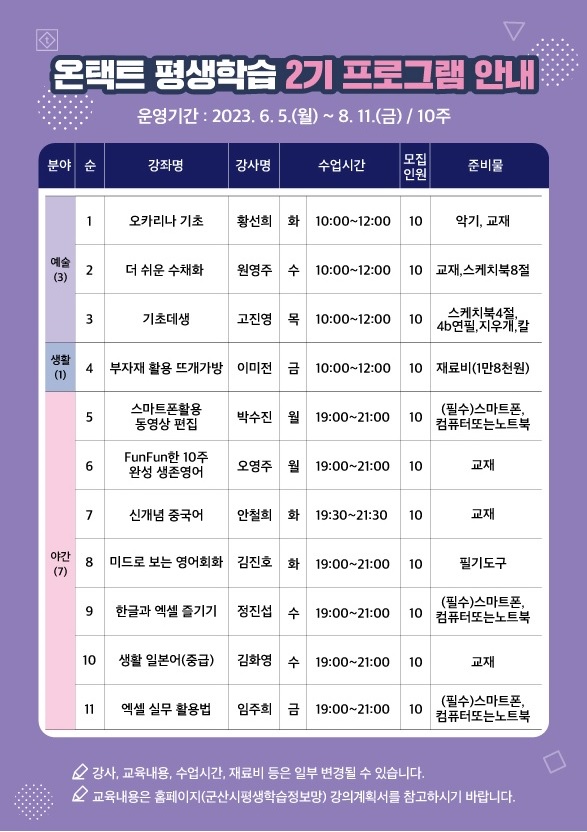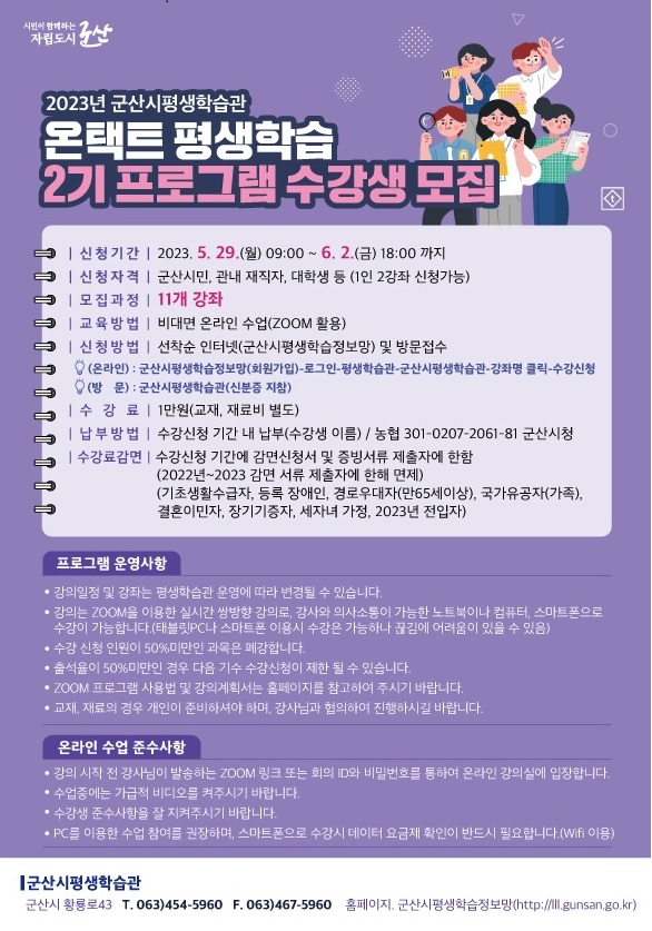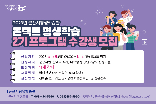 2023년 군산시평생학습관 온택트 2기 프로그램 수강생 모집